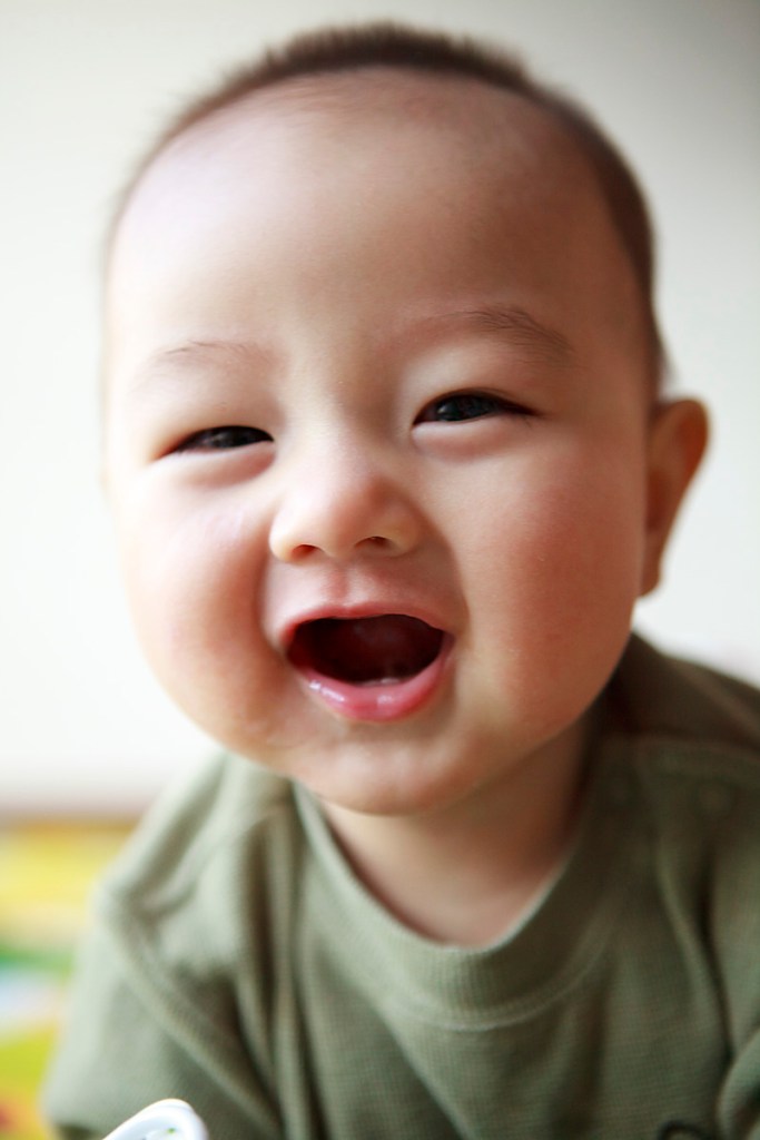 Maomao starts to crawl. If you place an object right out of his touch, he will tap his left foot a few time as if pondering on the situation, and pull himself up and lean forward to reach for it. But if it’s more than a few feet away he’ll just ignore it. He always reach with his right hand, not a lefty like me. I sent a video of him crawling toward a ball and Mom called half an hour later saying Dad has been watching it over and over again with mounting merriment and satisfaction. Maomao flipped himself over on the bed when he was two and half month old, grabbed the bowl and drank water from it when Dongdong tried to feed him with a spoon last month, and started yapping a lot last week. But this might be the first time he consciously strives at a goal, and attain it. No wonder Dad is so proud of him.