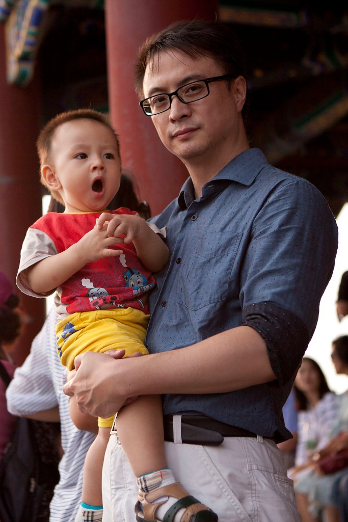 景山公園。本來媽媽不願意上來,我和貓貓先上去看了一眼又下來叫她。第二次是媽媽牽著貓貓一步一步爬上來的,老高了。旁邊經過一對夫婦,那個媽媽背著過兩三歲的小孩,他爸看見貓貓跟他兒子說,自己下來走!人家那麼小小孩兒都自己走。