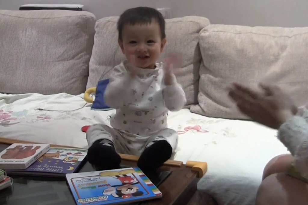 December 17, 2014 今天表演了認 Winnie the Pooh,米老鼠,Reindeer,獅子,猩猩,蝴蝶,青蛙,兔子,小鳥。認對了還自己鼓掌。門上貼的向日葵也認識,看見圖書上的向日葵就會跑過去指門上那個。早晨起來看見月亮還在天上,也會指門上貼的星空裡面的月亮。問他貓貓taxi在哪裡啊,會指牆上紐約那幅照片。