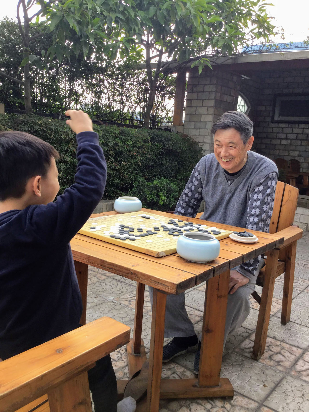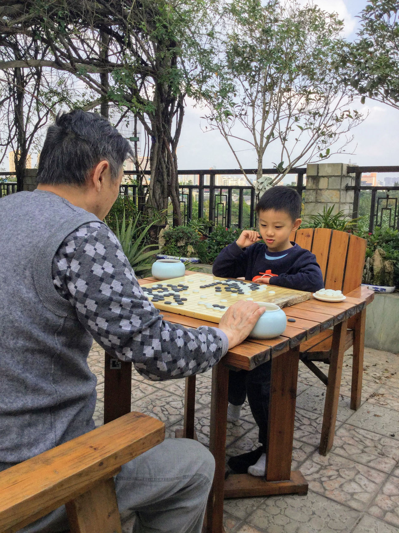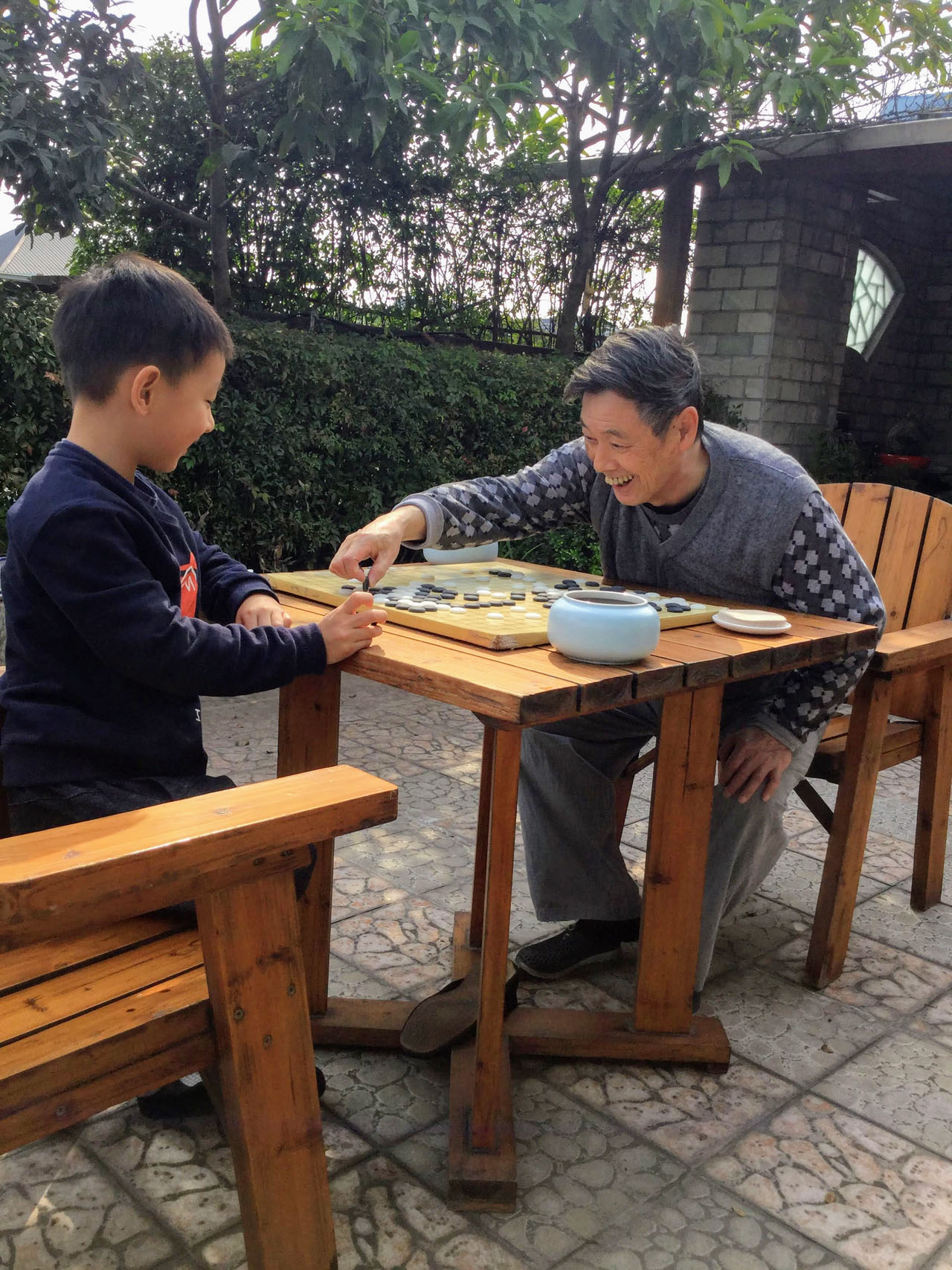 臨走的上午,一定要跟爺爺再下一盤贏回來。在機場跟奶奶道別以後,仰頭看著我說,“爸爸我很乖對不對?跟奶奶分開沒有哭。”聽得我倒有點想哭了。